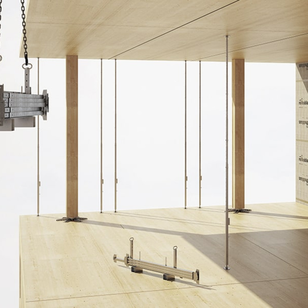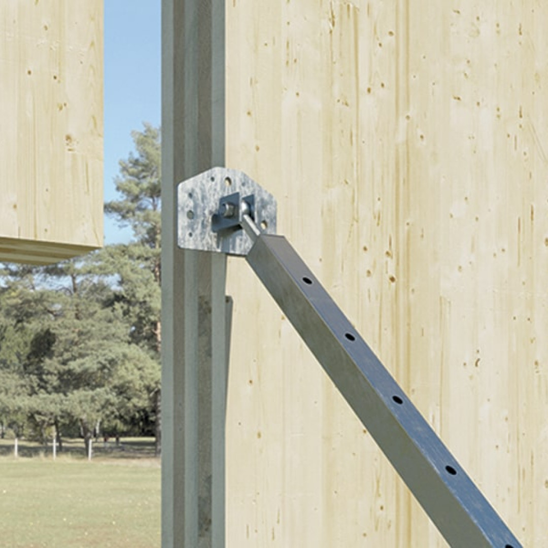 Frábær lausn sem veitir tímabundinn stuðning við uppsetningu stórra timbureininga, svo sem veggja og gólfplata